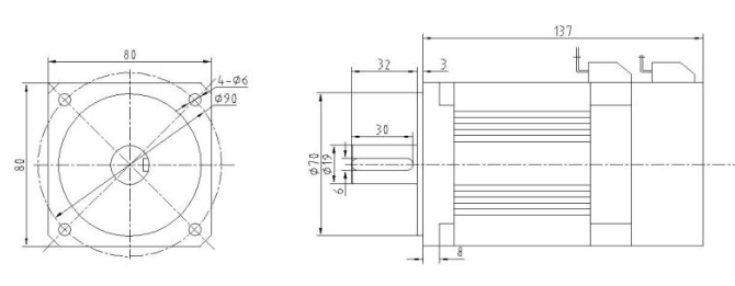 750W直流伺服電機尺寸:80*80*135